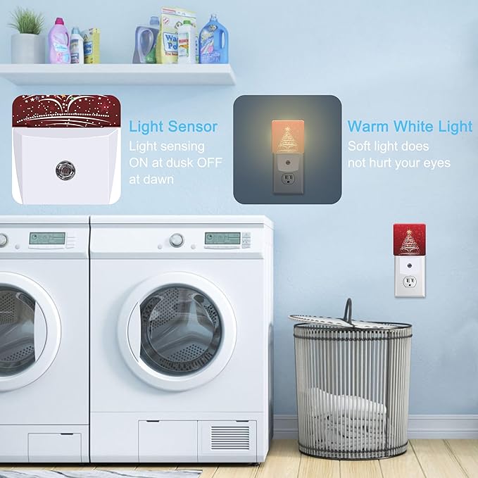 Christmas Tree Plug in Night Light with Auto Dusk to Dawn Sensor,Warm Night Lights for Boys Girls Bedroom Bathroom Hallway Kids Room Gifts
