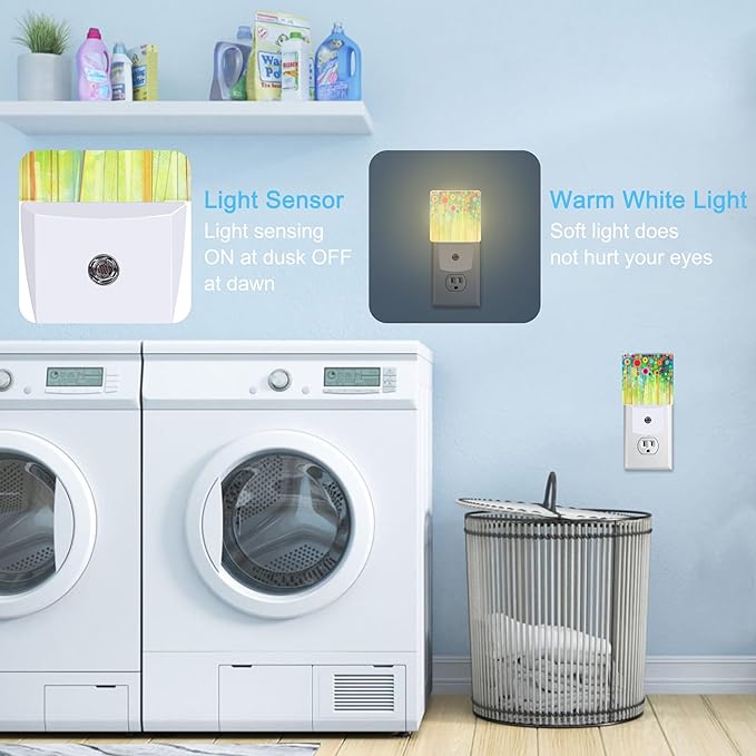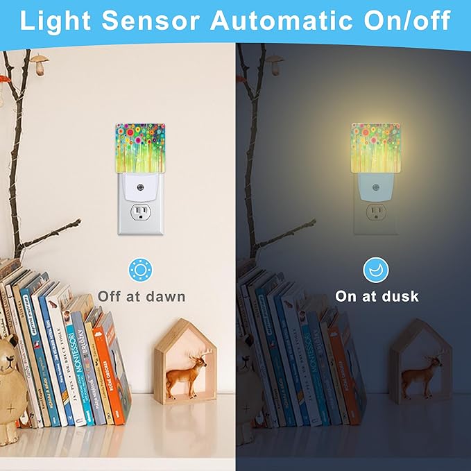 Abstract Floral Watercolor Painting Plug in Night Light with Auto Dusk to Dawn Sensor,Warm Night Lights for Boys Girls Bedroom Bathroom Hallway Kids Room Gifts