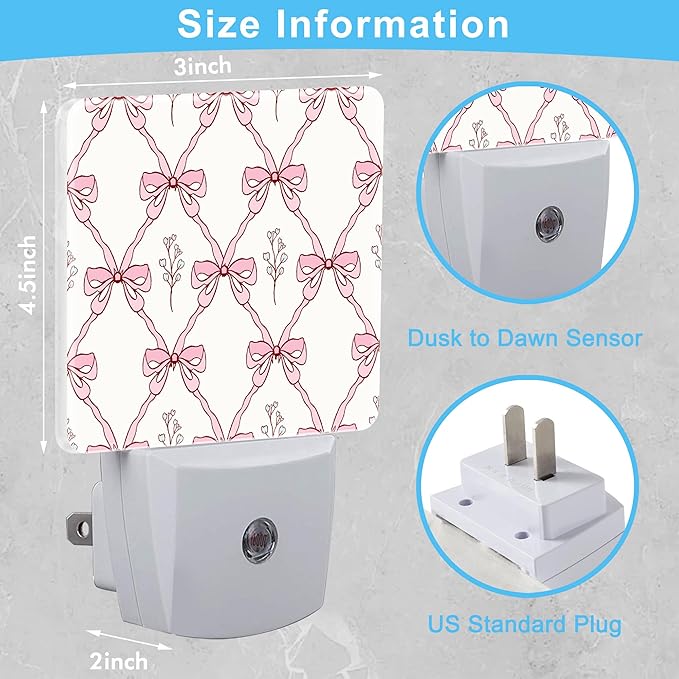 Vintage Retro Pink Ribbon Plug in Night Light with Auto Dusk to Dawn Sensor,Warm Night Lights for Boys Girls Bedroom Bathroom Hallway Kids Room Gifts