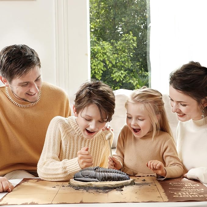 - [Perfect Gift for Aspiring Archaeologists]An award-winning archeology kits for kids—ideal for birthdays or classrooms. The dinosaur fossils for kids are preserved in a sturdy plaster block, ensuring hours of screen-free, educational fun.
