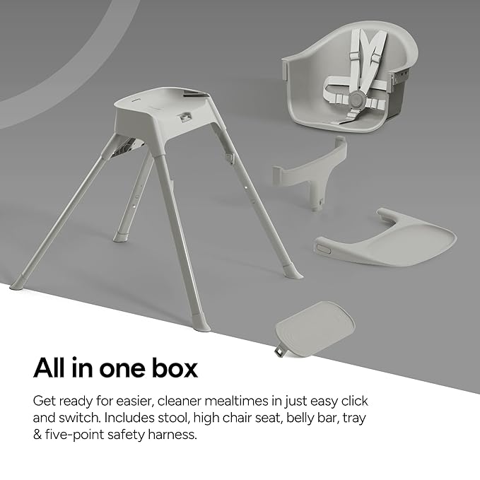 - 7-in-1 Versatile: The Olli baby highchair adapts to every stage of your child's growth, transforming from a full-height baby high chair to a step stool, low snack toddler chair, tray-free seat, and more. One highchair for babies and toddlers supports your child from infancy to toddlerhood with unmatched versatility.