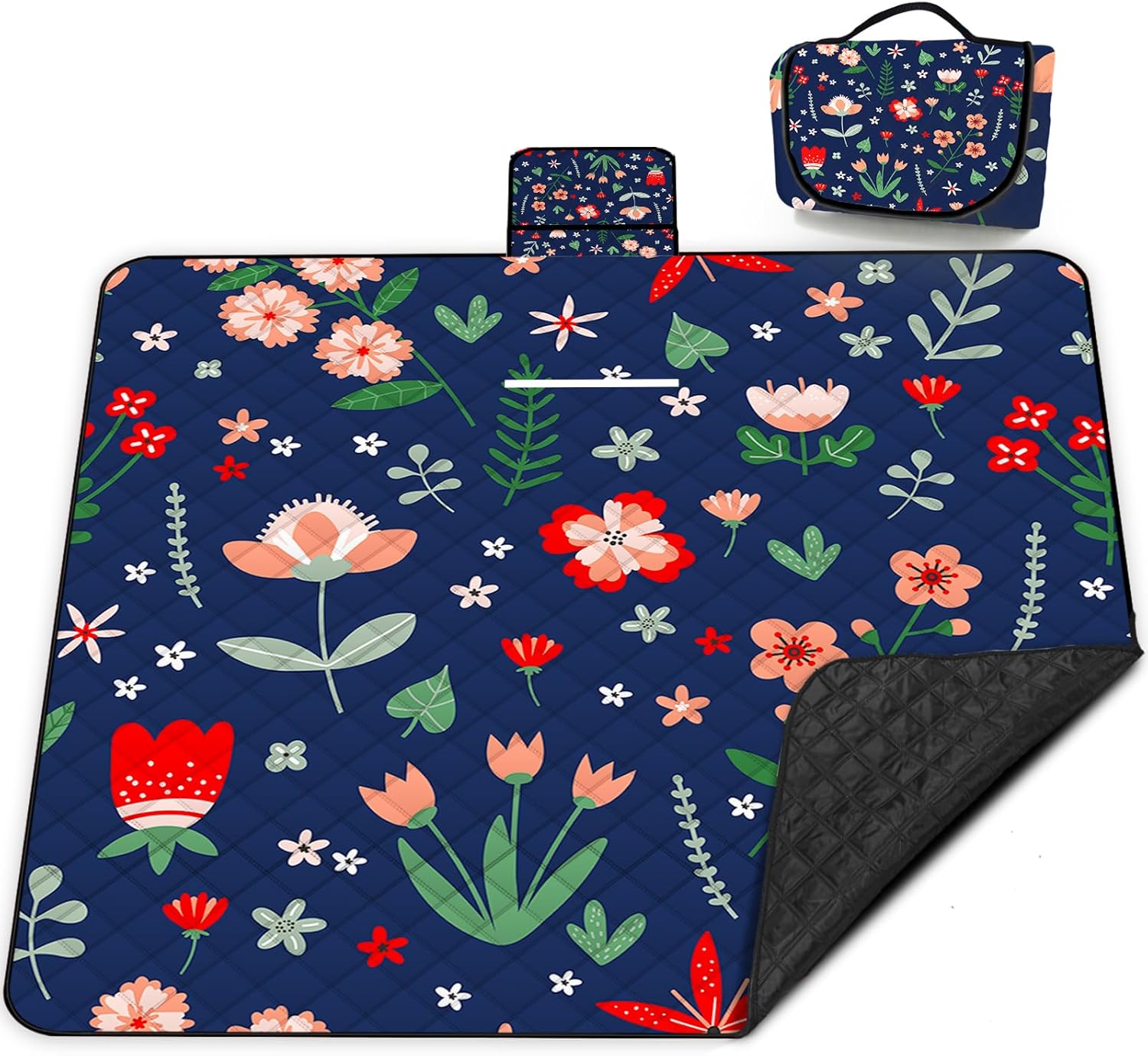 - 【🏵️💮🌸🌺🌱Comfortable Picnic Blankets】The upper material is made of waterproof fongee fabric, Excellent waterproof performance, Can keep clean, The bottom layer is made of wear-resistant Oxford cloth, which repels moisture, sand and insects.Thickened middle padding layer can cushion hard or uneven ground, so that whether you are in the park, beach or any outdoor place, the Pcnic blanket can provide you with a comfortable and clean sitting surface.