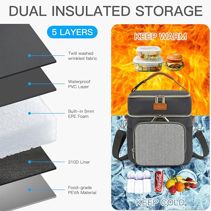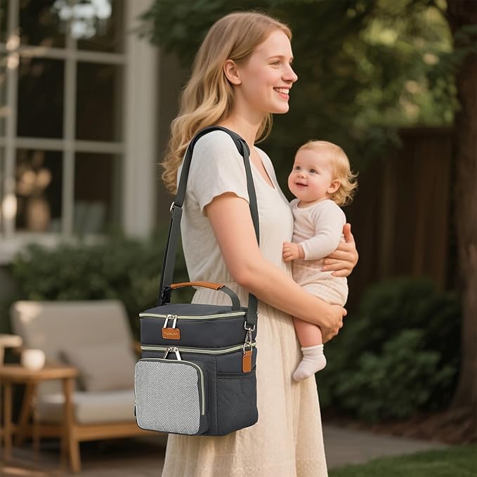 - Hands-Free Comfort & Stylish for Moms on the Go: Adjustable shoulder strap + top handle offer versatile carrying options. The insulated breastmilk bag fits in strollers, diaper bags, or carry-ons. Stylish grey with coffee brown trim makes it a cute cooler bag for moms.