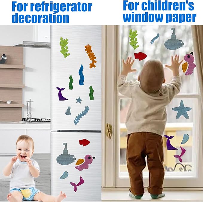 - 【Vibrant Summer Ocean Design】: our 7-piece gel fresh-keeping set features vivid underwater themes such as shells, fish and rainbow. Bright colors attract children's attention and stimulate their imagination, making them an ideal choice for seasonal classroom decoration or daycare window scenes