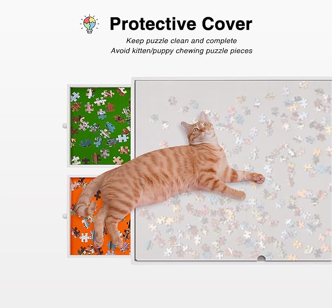 - 【Protect Your Unfinished Puzzle with a Cover】Comes with a protective cover to place over your puzzle when not in use, keeping it safe from dust, pet hair, or accidental bumps. You can pause and store your puzzle securely at any time.