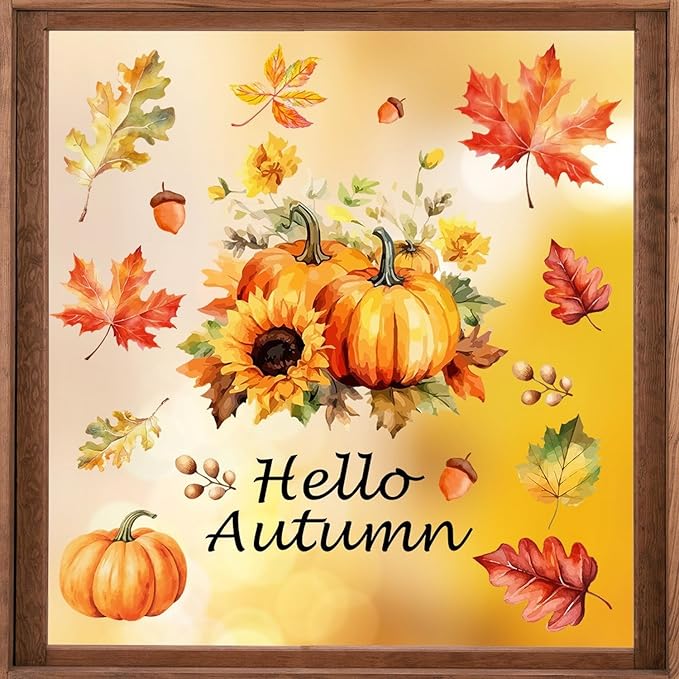 - Unique Design: Includes 1 sheet of autumn window clings for glass windows, featuring maple leaves pumpkin and flower. Perfect for fall leaves window clings to brighten up any glass surface