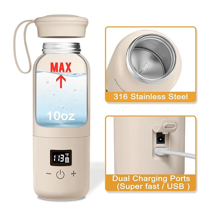 - 【Cordless Heating & Rechargeable】Our travel bottle warmer can heat up 10oz milk/water up to 5 times after fully charged. Equipped with super charging power adapter, the portable milk warmer could be charged in 2-3 hours. With a Type-C / AC dual charging port, you can charge it in car, mobile power or any USB port.