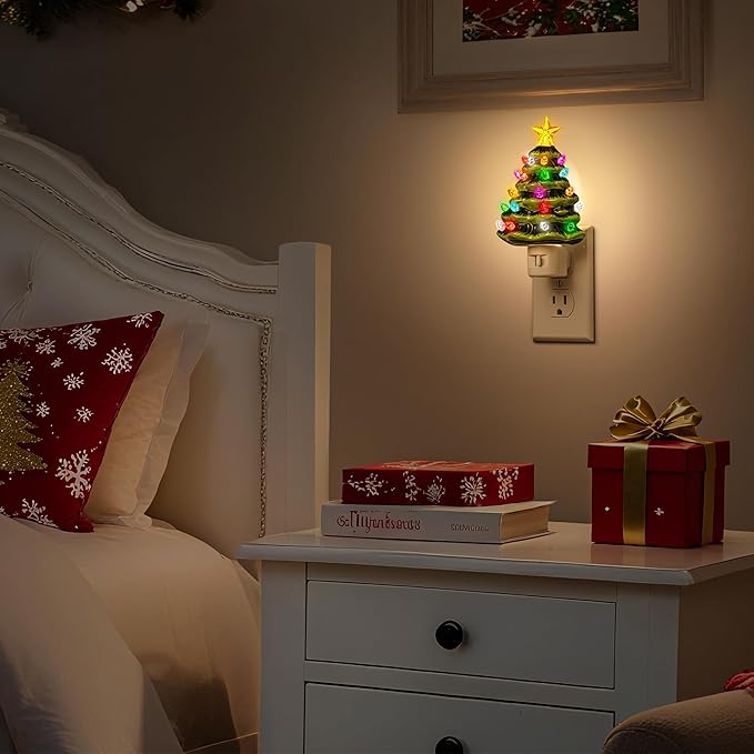 - Festive Decor: This Christmas tree night light (a practical plug-in wall night light) adds warm holiday cheer with its lifelike tree silhouette and delicate embossed details. Ready to use out of the box—just plug in, and its soft 3000K warm white glow brings lasting Christmas charm year after year.