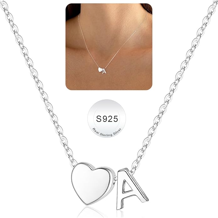 Turandoss S925 Sterling Silver Heart Initial Necklaces for Girls Teen Girls, Dainty S925 Sterling Silver Tiny Heart Initial Necklace Letter Necklaces Trendy Jewelry Gifts for Girls Teen Girls