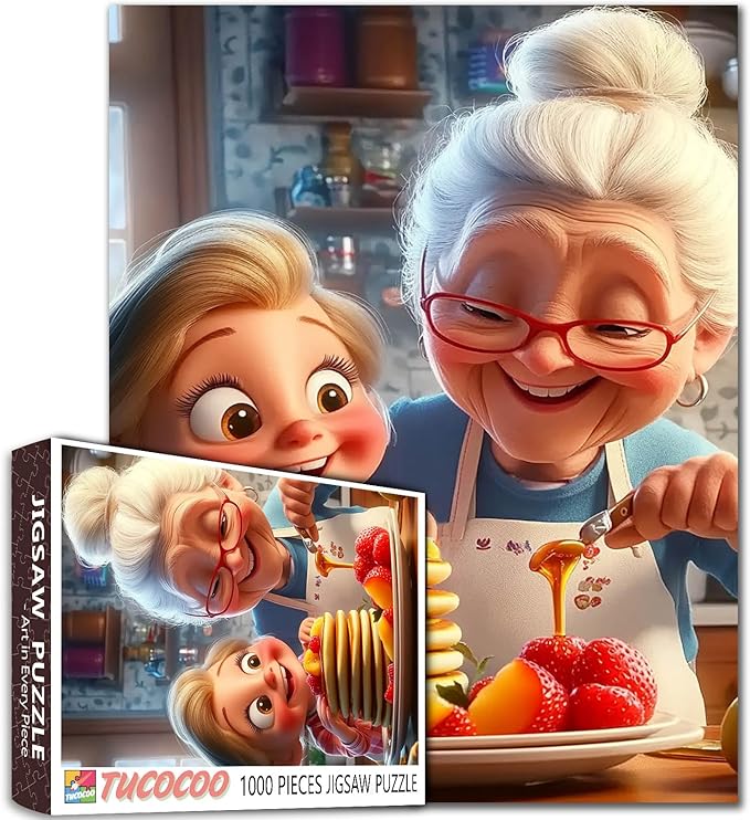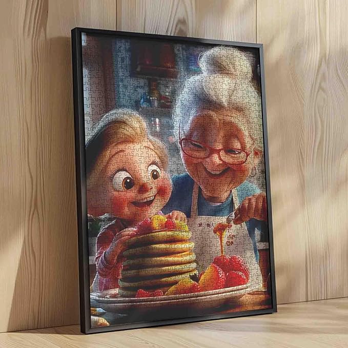 1000 Piece Jigsaw Puzzle for Adults Students Grandma and Granddaughter Making Pancakes in Kitchen Puzzles Happy Family Scene Vibrant Colors Art Home Decor Size 20X27 Inches Fun Gift Jigsaw Game