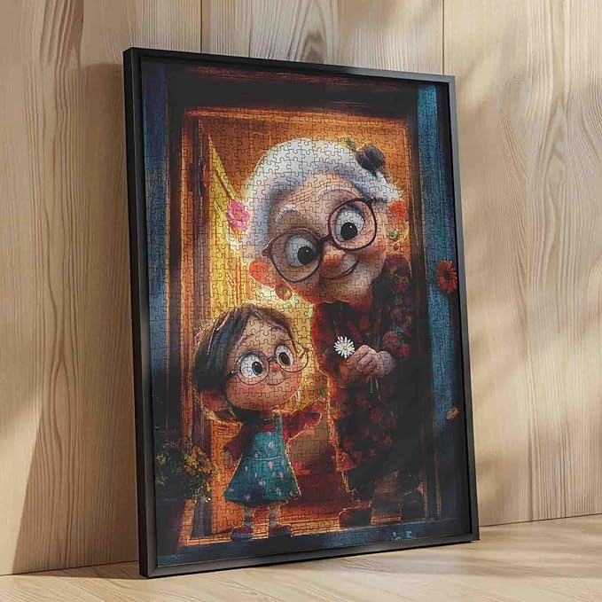 1000 Piece Jigsaw Puzzle for Adults Students White Haired Grandma and Girl Holding Daisy Puzzles Colorful Clothes Cozy Apartment 20×27 Inches Unique Art Gift Home Decor Fun Family Activity