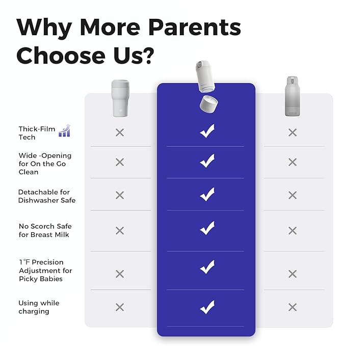 - 1°F Precision Heating & Temperature Control: Adjustable from 77°F to 131°F to match different feeding needs — whether gently warming breast milk or heating water for formula. Always delivers precise temperature for safe and comfortable feeding.