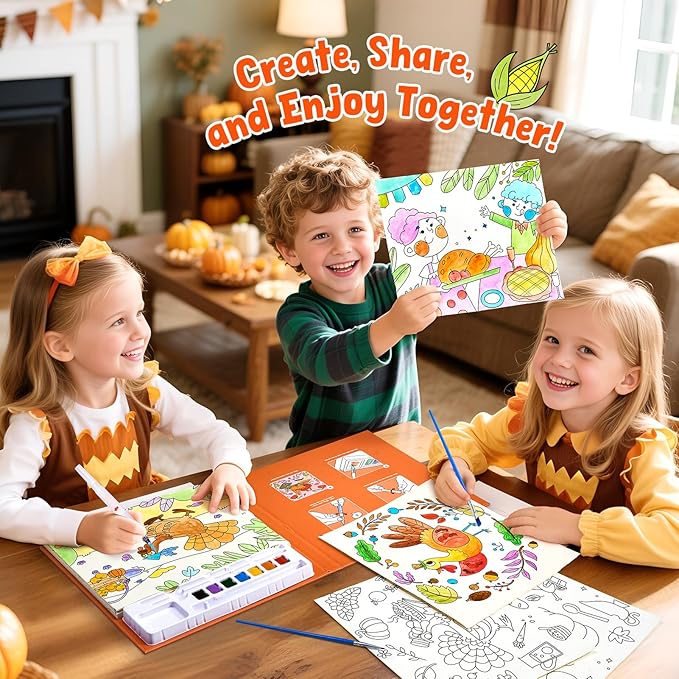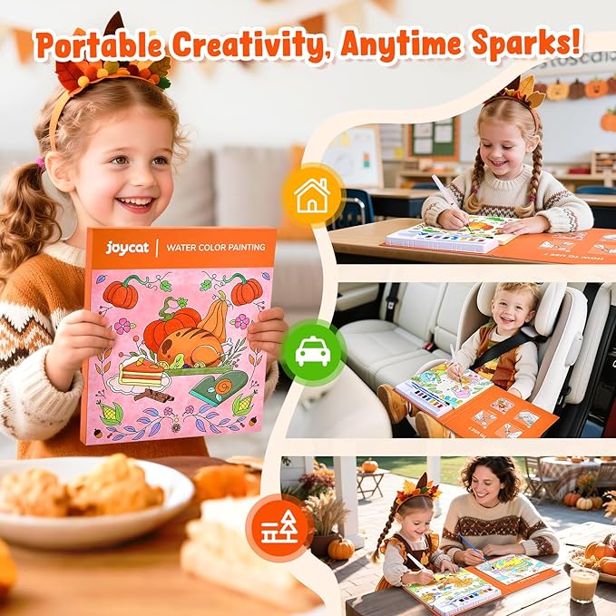 JoyCat Paint with Water Coloring Books for Toddlers, Watercolor Painting Sets for Kids Ages 3-5 4-8, Arts and Crafts Drawing Activities Toy Birthday Gift for Boys Girls (Thanksgiving)