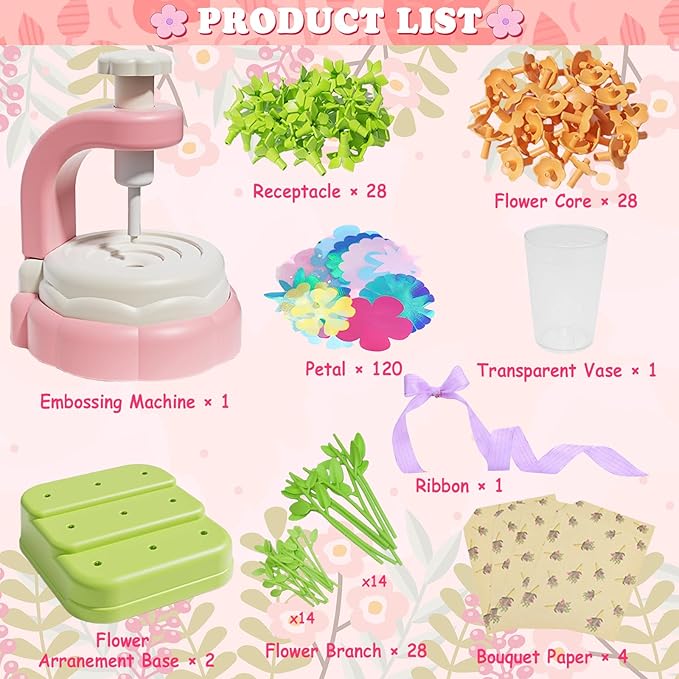 - 🌸No Glue, No Mess Design: The embossing machine is easy to use, allowing you to effortlessly create beautiful bouquets in no time. One really nice thing is that you do not have to mess with glue with this kit when making flowers. Showcase your exceptional floral arranging skills to craft vibrant blooms for your loved ones!