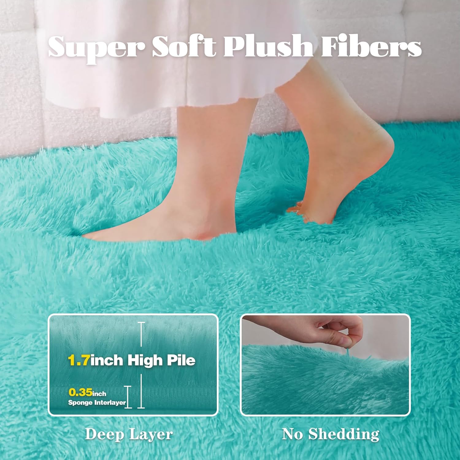 5x8 Area Rug for Living Room: Fluffy Shag Soft Washable Rugs Fuzzy Plush Indoor Carpet for Bedroom Nursery Playroom Dorm Kids Girls Boys Room (Teal Blue, 5'x8')