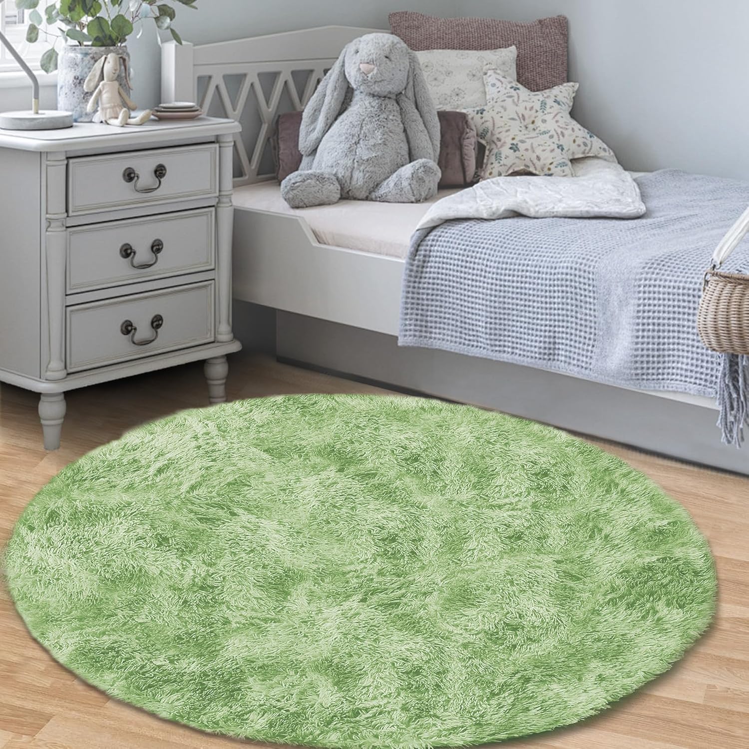 4FT Round Rug for Bedroom: Fluffy Shag Soft Washable Rugs Circle Small Fuzzy Plush Indoor Carpet for Living Room Nursery Playroom Dorm Kids Girls Boys Room (Sage Green, 4'x4')