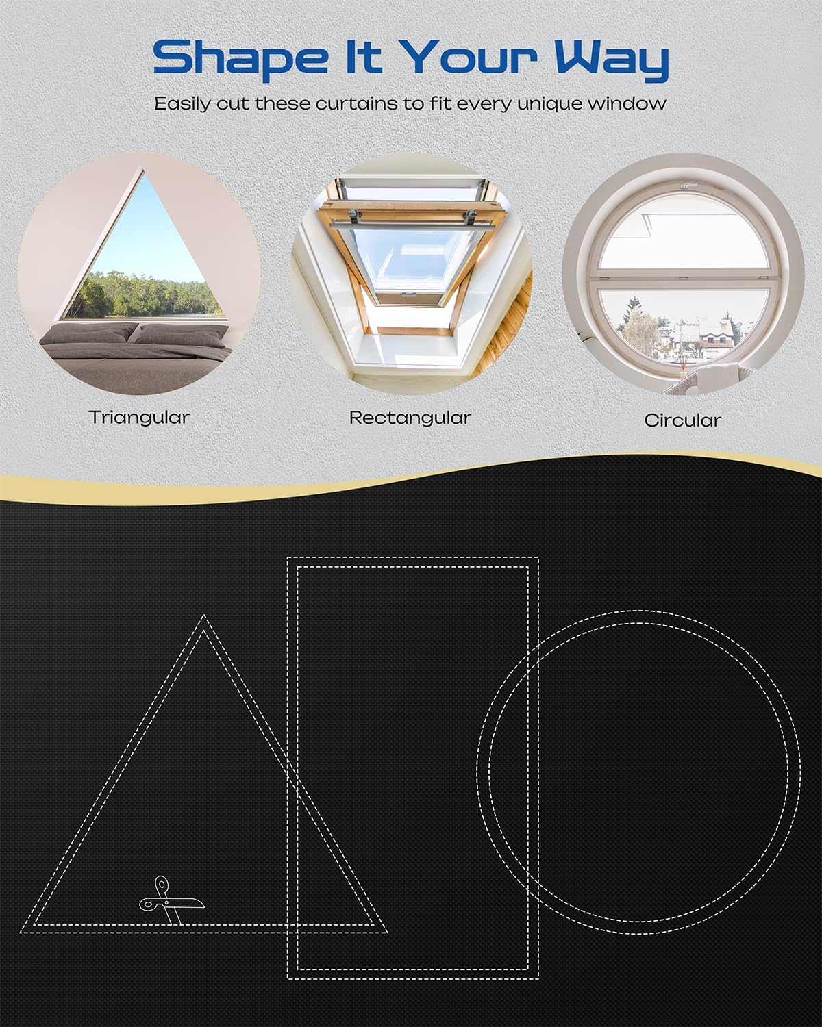 - Multiple Sizes Available - Offering a range of width and height specifications to precisely fit various window types, from small bathroom windows to standard bedroom windows and large living room floor-to-ceiling windows. It is recommended to choose a width 2–5 inches wider than the window and a length with a 1–2 inch drape. Combined with the hook-and-loop tapes to seal the edges, it achieves 100% light-proof shading