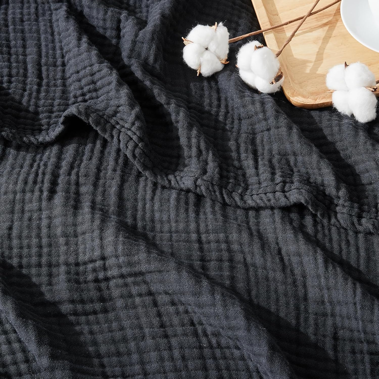 EMME Cotton Muslin Throw Blanket Couch Breathable Gauze Blanket Soft Lightweight Blankets Adults (Black, 50"x60")