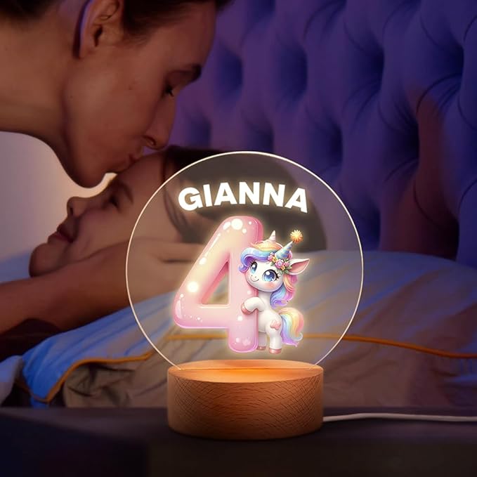 callie Acrylic Night Light Name Plate Personalized, Custom Cute Dinosaur Car with Wooden Base Bedroom Decor, Birthday Gifts Kid Gifts for Family (Cute Cartoon)