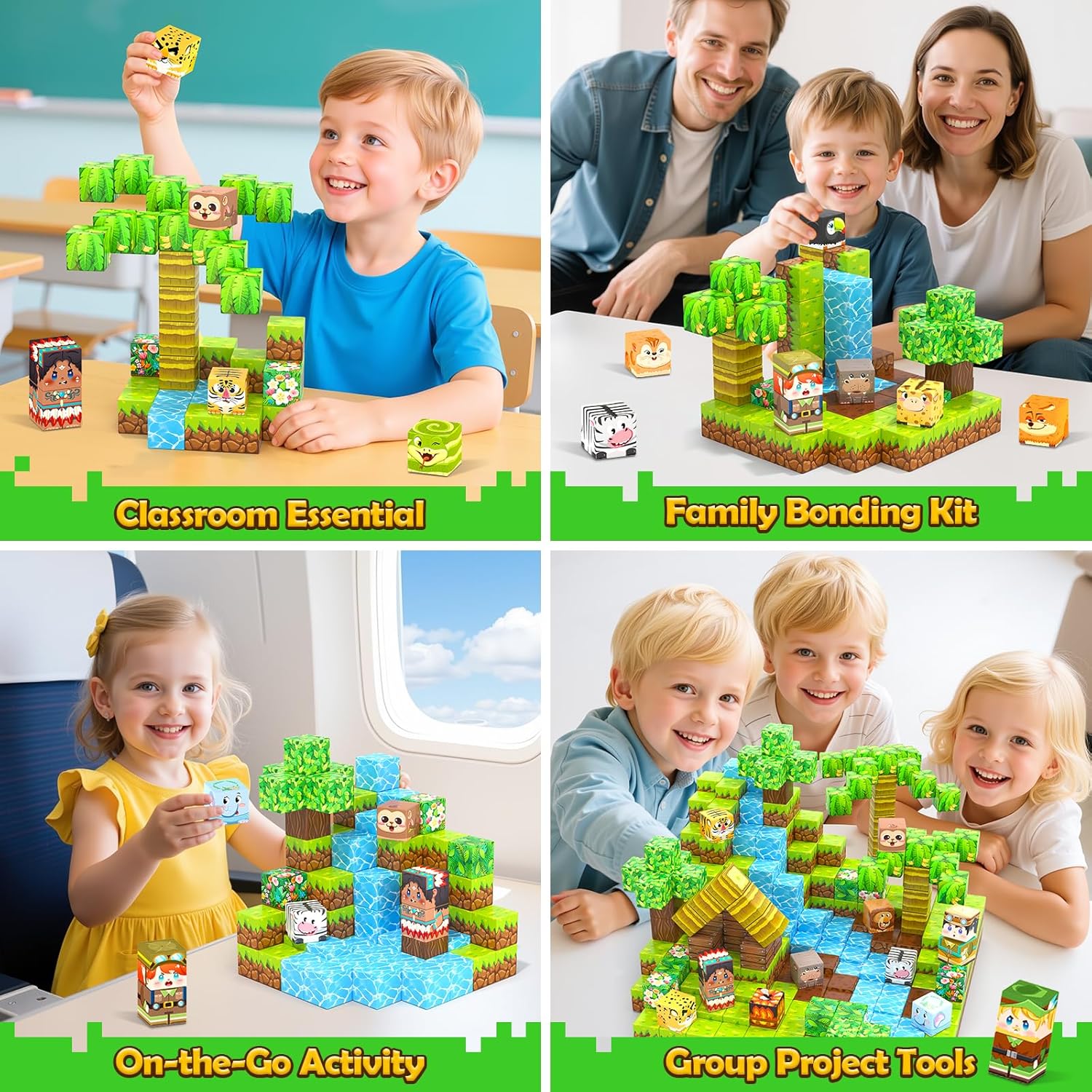 - 【Learn, Build, Take Anywhere】The magnetic building block set is an excellent outdoor toy for boys and girls aged 3-6, 5-7, 4-8, 8-12, and even teenagers will love it! It comes with a jungle adventure guide to assist, and a storage bag for easy carrying and cleanup, making it an ideal travel toy. Perfect for creative educational activities in preschool and kindergarten classrooms, so these magnetic cubes are excellent classroom must have tool. The open-ended play set allows children to unleash their imagination, fun building blocks make screen-free time highly appealing