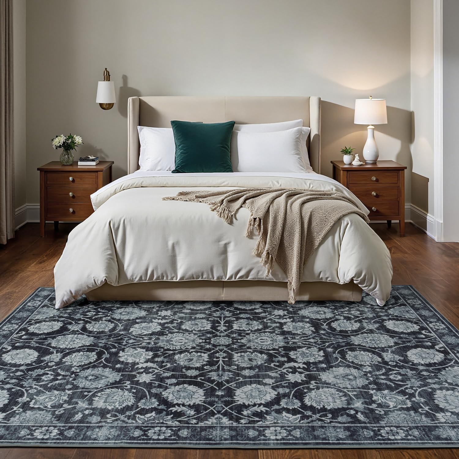 - Cloud-Like Comfort: Step barefoot onto this luxuriously soft faux wool rug, and feel as if you’re walking on clouds! The fuzzy rug keeps your feet warm and protected from cold, hard floors, while its floral print brings vintage elegance to your home