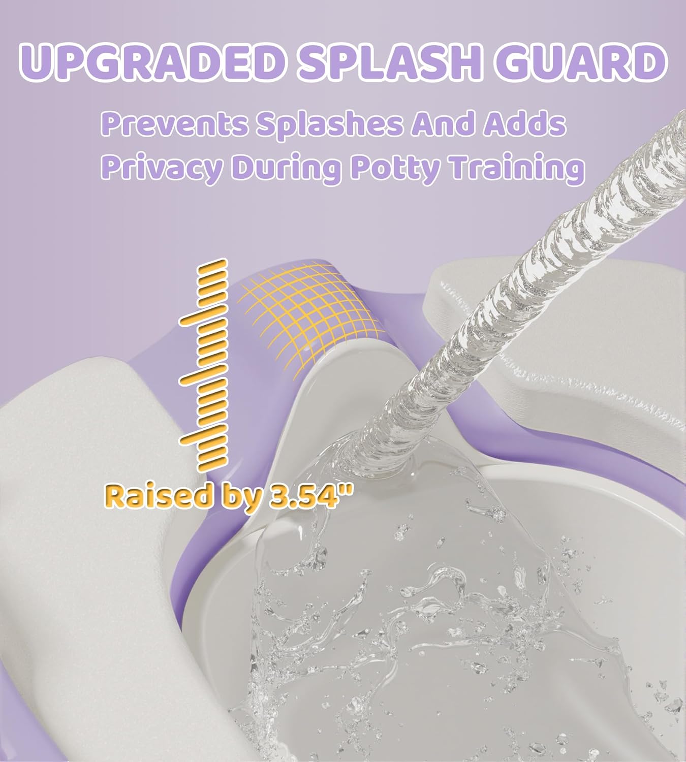 - 【Splash Guard & Urinal Design for Boys】Includes an extended splash guard with a 2.8-inch deep arc recess to prevent spills, ideal for boys during potty training. The urinal-style front makes it easier to keep things tidy and mess-free, promoting better hygiene and easier cleanup.