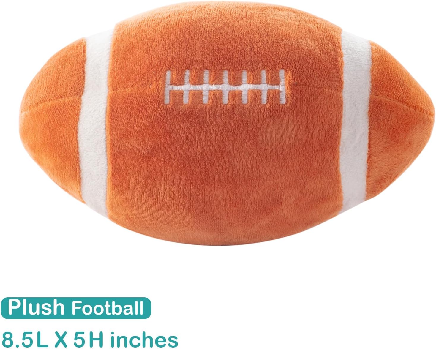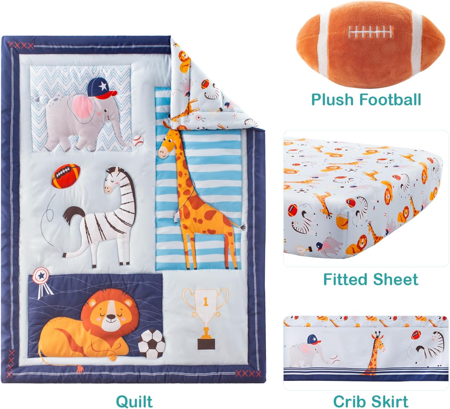 4 Piece Crib Bedding Set for Boys Girls, Infant Toddler Nursery Baby Bedding Sets Includes Cartoon Quilt, Fitted Crib Sheet, Crib Skirt and Plush Football Toy (MVP)