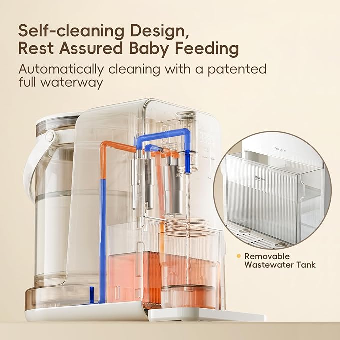 - Effortless Precise Volume Pour At Your Fingertips- Just a single button press, our machine dispenses the ideal accurate amount of water for your baby's needs. Smart pour 10-300ML to make your baby's feeding routine more efficient and convenient.
