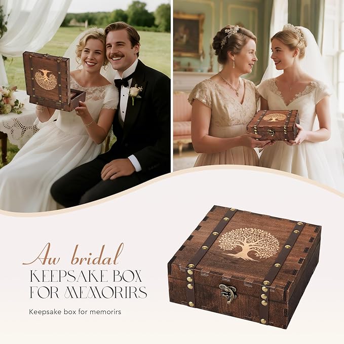 AW BRIDAL Wedding Keepsake Box with Tree of Life Engraved, Wood Decorative and Storage Boxes, Bridal Shower Gifts for Bride, Engagement Gifts for Couples Newly Engaged, Anniversary Marriage Presents