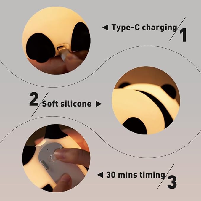 - [Rechargeable & Portable Convenience]Powered by a Type-C USB cable, this rechargeable panda night light . Touch/click control makes it easy to turn on/off, while its compact size is ideal for travel or bedside use.
