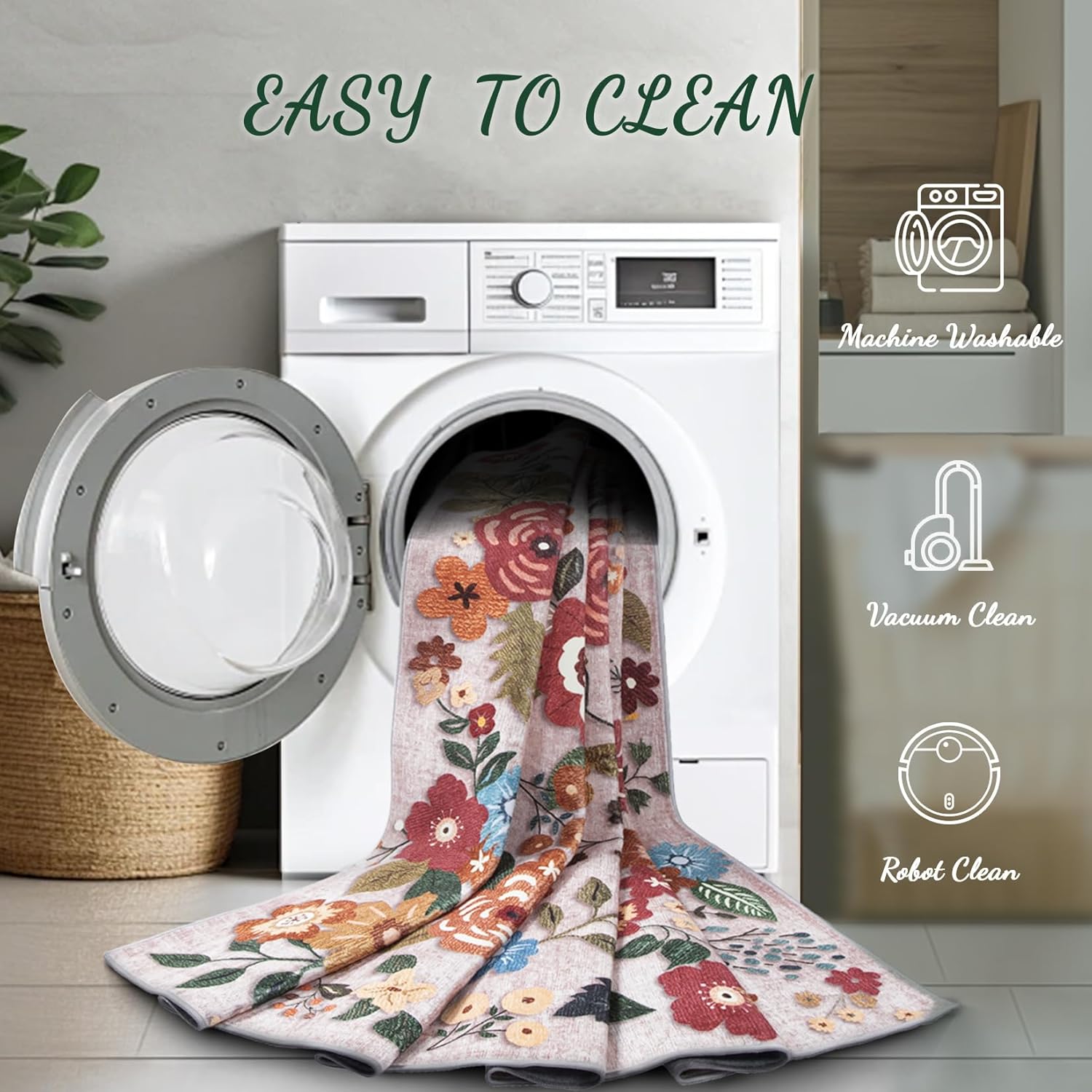 - Machine Washable Area Rugs: Bedroom rugs are stain-resistant on the surface and can be cleaned up with a low powered vacuum cleaner for everyday dust, while stubborn stains can be wiped up with a damp cloth. Vintage printed washable rug can also be thrown straight into the washing machine to save hassle and keep your rug looking new