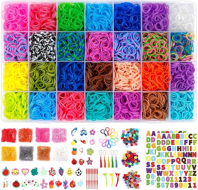 - Included Components : 18975 rubber bands in 37 colors, 600 S-Clips, 252 beads, 10 backpack hooks, 30 charms, 8 crochet hooks, 5 tassels, 3 hair clips, letter stickers, storage box 18975 rubber bands in 37 colors, 600 S-Clips, 252 beads, 10 backpack hooks, 30 charms, 8 crochet hooks, 5 tassels, 3 hair clips, letter stickers, storage box