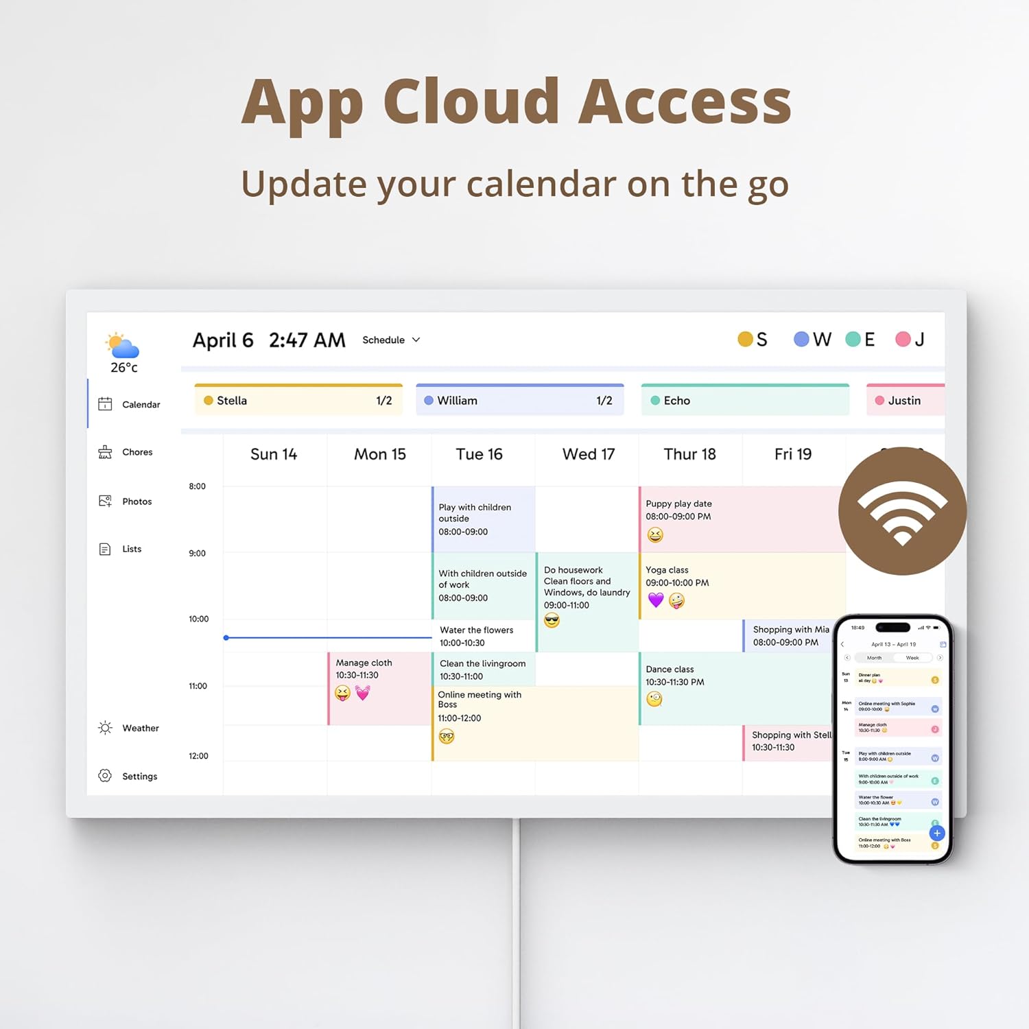 - 【Manage from Anywhere】: Stay connected with the powerful eCalendar App. Access and manage your calendar on the go, with free features like a photo frame, chore chart, dinner plan, grocery list, and more. Paid functions like Magic Import offer advanced tools tailored for users with special needs.