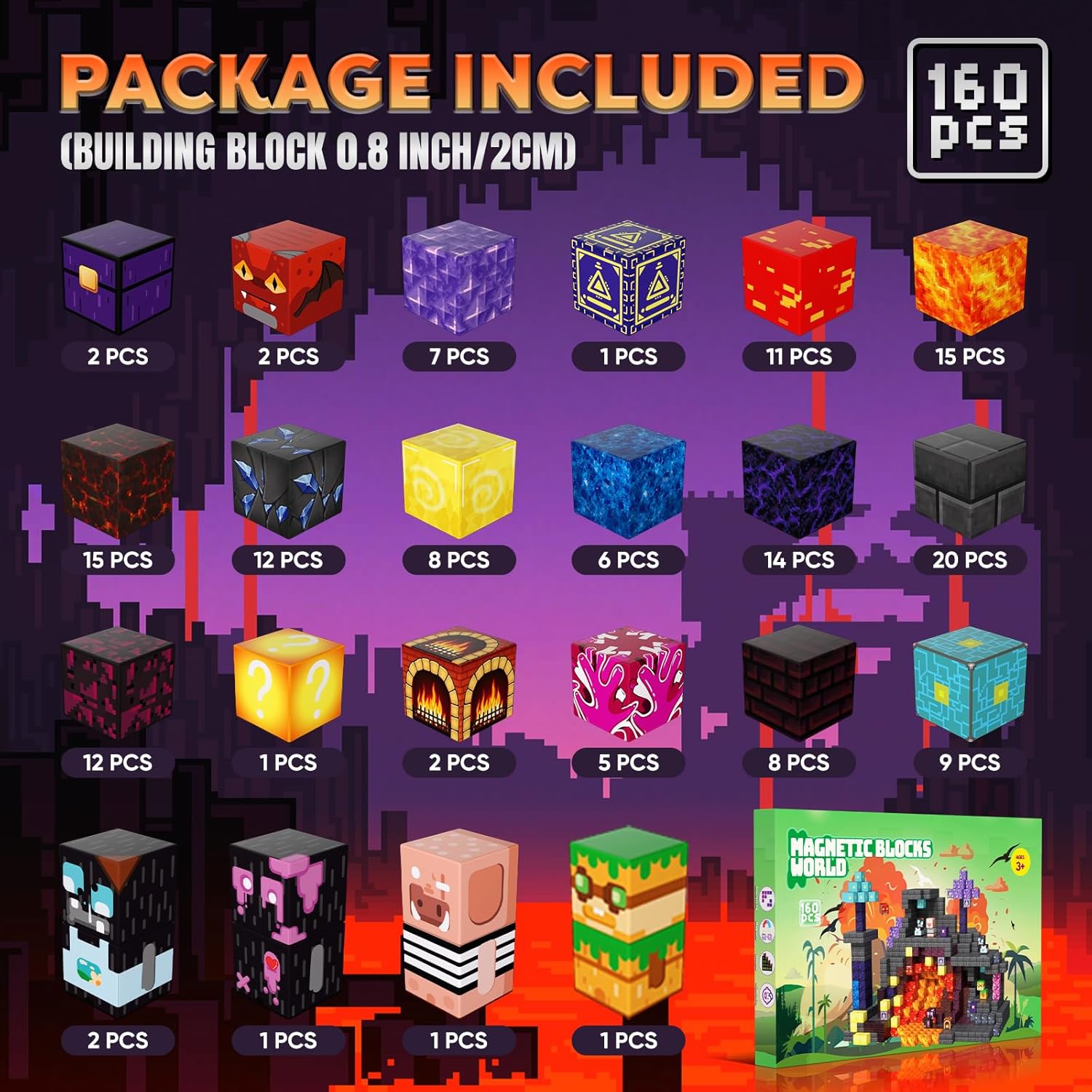 - Countless Creative Possibilities: The RavisingRidge 160 PCS magnetic building toys set offers a wide variety of patterns and shapes designed for kids ages 3 and up. It sparks curiosity and imagination while encouraging exploration through endless themed assembly possibilities. Each block measures 1x1x1 inch, perfect for small hands