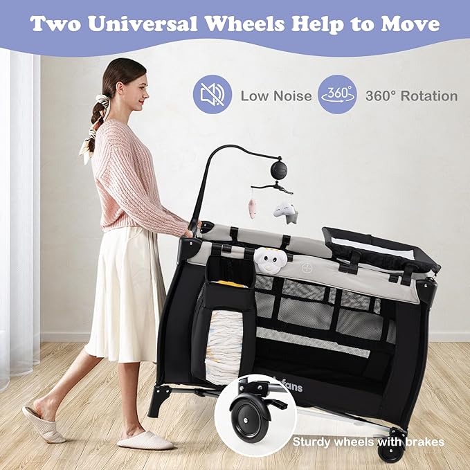 - Portable & Folding Design: The crib can be easily moved from room to room because of the two universal wheels. The lightweight and folding design ensures it doesn't take up too much space and folds into a carrying bag, making it an excellent choice for parents when traveling.