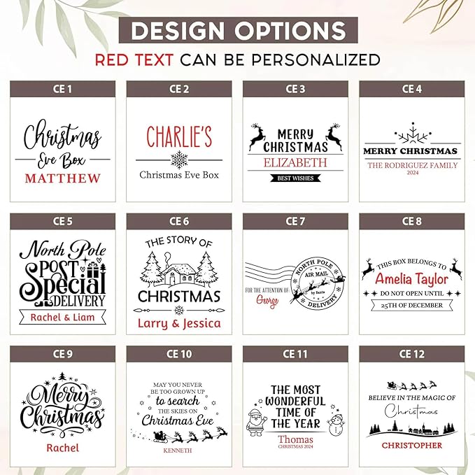 - 🎅 The Perfect Holiday Gift - Whether you’re surprising a child with Santa goodies or gifting a loved one a keepsake to cherish, this personalized Christmas Eve box is a heartfelt choice. Ideal for kids, families, couples, and friends—it’s a meaningful gift that captures the magic of the season in a beautifully crafted wooden box.
