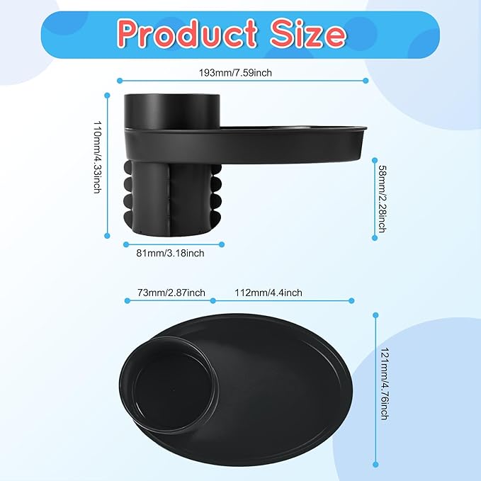- Universal Fit & Easy Install: Our handy car seat travel tray fits most cup holders under 2.8” in diameter and sets up in seconds - simply slip the tray into the cupholder, secure it with the rubber grips, and you’re ready to roll; It provides a stable ride and weighs barely ½ pound.