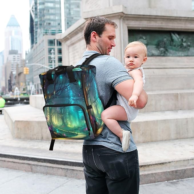 Fairy Forest Diaper Bag Backpack, Unisex Travel Baby Backpack Diaper Bags with Stroller Straps & Pacifier Case, Large Capacity Waterproof Diaper Backpack