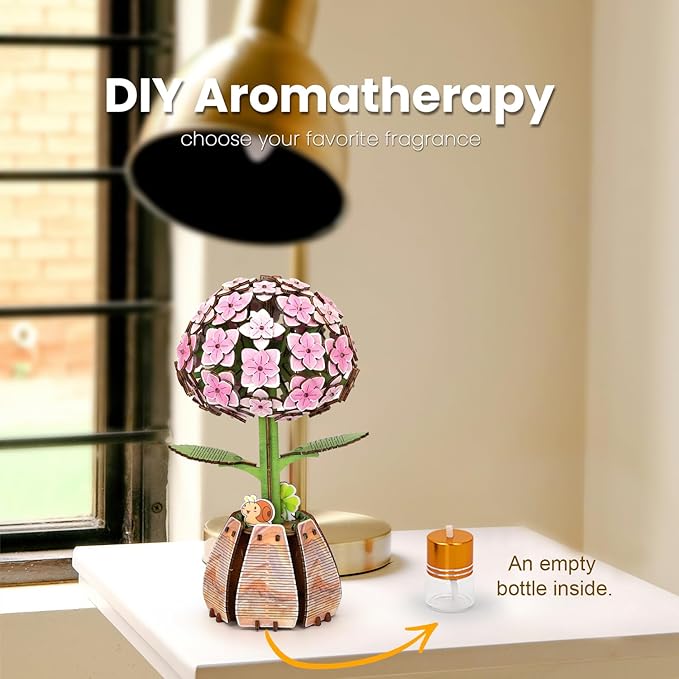 - 3D Wooden Puzzle Rose+ China Rose: The 3D wooden puzzle flowers aromatherapy puzzle set perfectly integrates the joy of puzzling, the allure of aromatherapy. put your favorite perfume or aromatherapy oil or essential oil inside the empty bottle which has diffuser stick . The bottle can be put under the flower base . when you close to the flowers, you can get not only nice visual sense, but also perfect smelling sense.