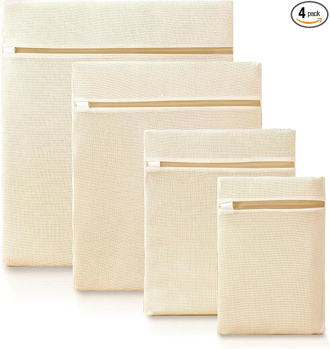 4Pcs Cotton Mesh Laundry Bags for Delicates,Breathable Mesh Garment Bag for Washing Machine, Travel Wash Bags with Zipper for Bras, Underwear, Socks, Clothes, Laundry Dorm Room Essentials(S-XL)