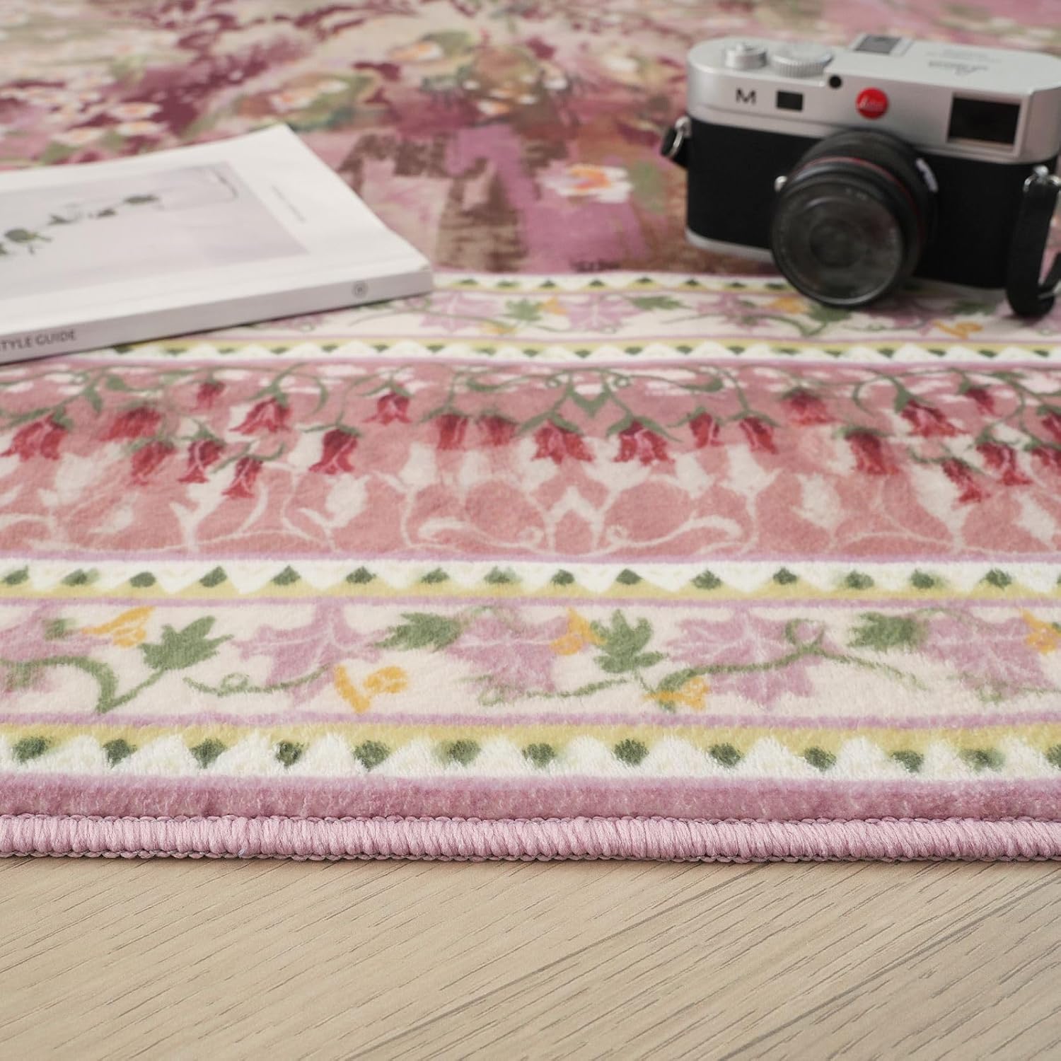 2x3 Rug Impressionist-Style Vintage Indoor Door Mat Machine Washable Small Area Rug Non-Slip Low Pile Throw Rugs for Entryway Kitchen Front Door Indoor Entrance Entry Kids Room, Pink