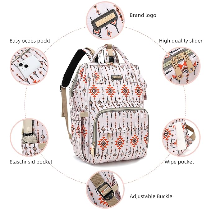 Diaper Bag Backpack, Diaper Bags for Baby Girls Boys, Baby Bags for Moms Dads, Nappy Changing Bag with Insulated Pockets,Multi-functional Waterproof Backpack with Stroller straps-Tribal Orange