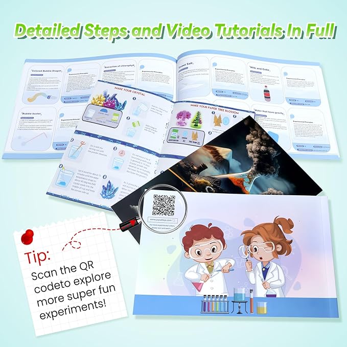 - Visual Learning Guides: Illustrated step-by-step guides paired with scannable video demos clearly explain procedures, material measurements, and key tips for every science experiment. Empowers "little scientists" to analyze, experiment, and learn independently—every attempt deepens understanding
