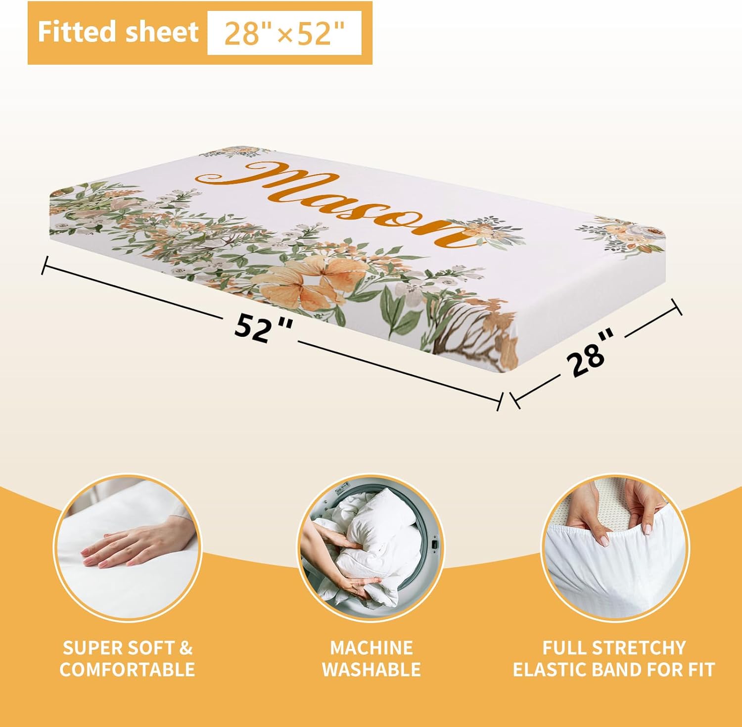 Custom Baby Crib Set - 5 Pcs Personalized Name Flowers Crib Bedding Set for Infants Toddlers - Soft Double Layer Nursery Bedding Set for Girls Boys - Customized Gifts for Baby Shower Birthday