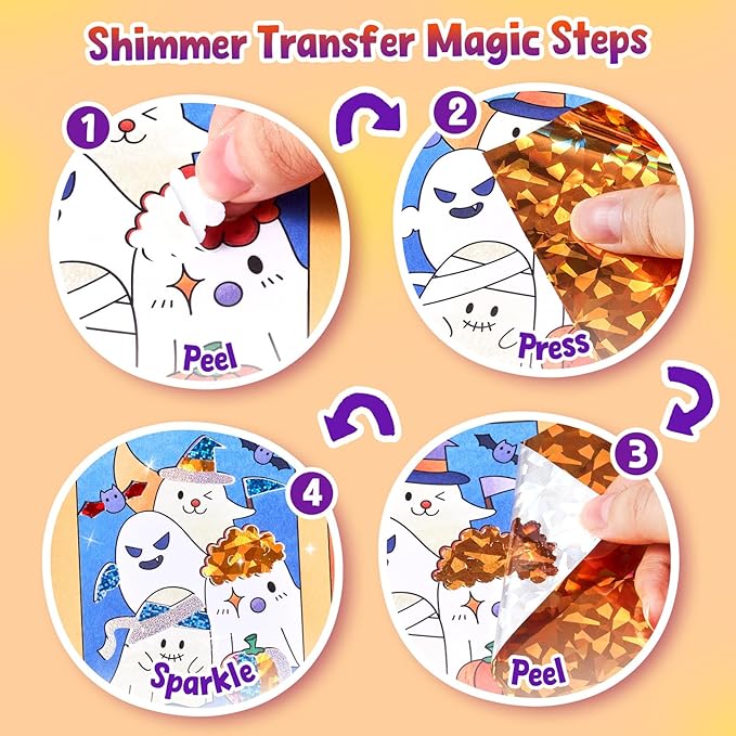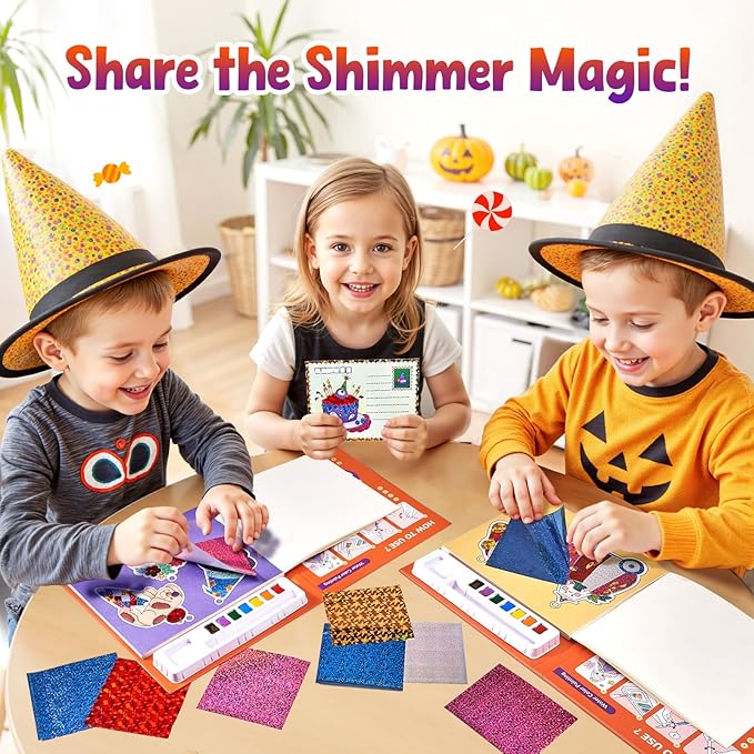 - Sparkling Craft Art, Easy to Create Stunning Halloween Effects: Craft is simple yet incredibly fun! Simply peel away parts of the design to reveal the sticky surface, apply the sparking pieces, then gently peel it off to reveal a dazzling Halloween artwork. Not only will kids experience the joy of success, but they will also improve their focus and fine motor skill from this craft activity. The vibrant princess-themed artwork will leave kids proudly showcasing their creations