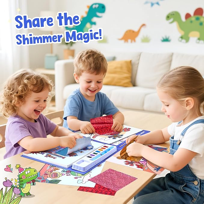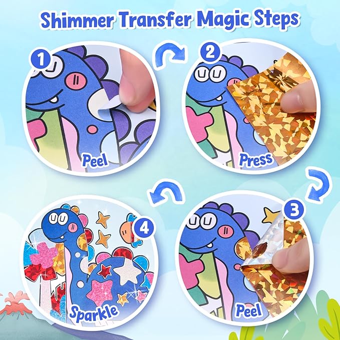 - Sparkling Craft Art, Easy to Create Stunning Dinosaurs Effects: Craft is simple yet incredibly fun! Simply peel away parts of the design to reveal the sticky surface, apply the sparking pieces, then gently peel it off to reveal a dazzling dinosaurs artwork. Not only will kids experience the joy of success, but they will also improve their focus and fine motor skill from this craft activity. The vibrant princess-themed artwork will leave kids proudly showcasing their creations