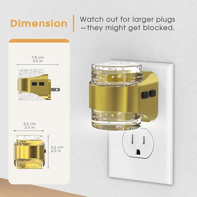 - BEAUTIFUL BUBBLE NIGHT LIGHT: This night lights plug into wall showcases a gold-plated finish and textured bubble detailing. Plug in night light casts a soft ambient glow upward and offers functional downward illumination, making it perfect for nurseries, corridors,bathrooms, and staircases, adding a touch of fashion to any space