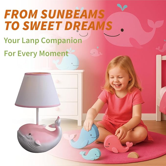 Whale Lamp,Kids Lamp, Night Lights,lamp with Fabric Lampshade, Compatible with E26 Bulb, USB Interface, Perfect for Girls' Room, Ideal Gift Choice