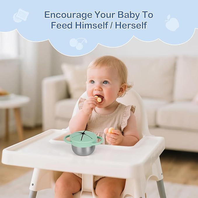 - Dual Easy-Grip Handles: Our snack cup features two soft, ergonomic handles that are lightweight and compact, allowing little hands to grip them securely and comfortably. Whether at home, in the car, or during your baby's adventures exploring the world, the easy-grip design helps develop hand-eye coordination, reduces slipping, and gradually fosters the good habit of independent eating.