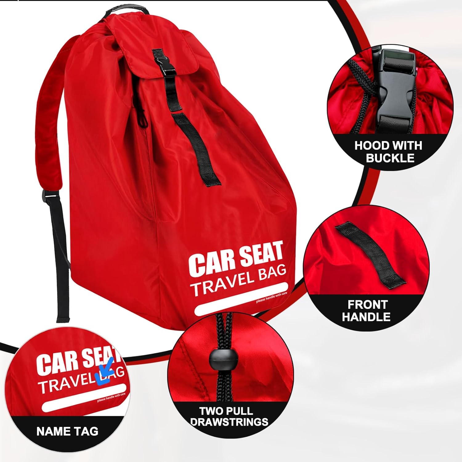 • ❤ EASY TO CARRY: Equipped with adjustable comfortable padded shoulder straps, our travel car seat bag can easily be carried like a large backpack. The car seat travel bag also has handles in front and top if you don’t want to carry it on your shoulder. When not in use, it can be easily folded and kept in the storage pouch, without taking up much space.